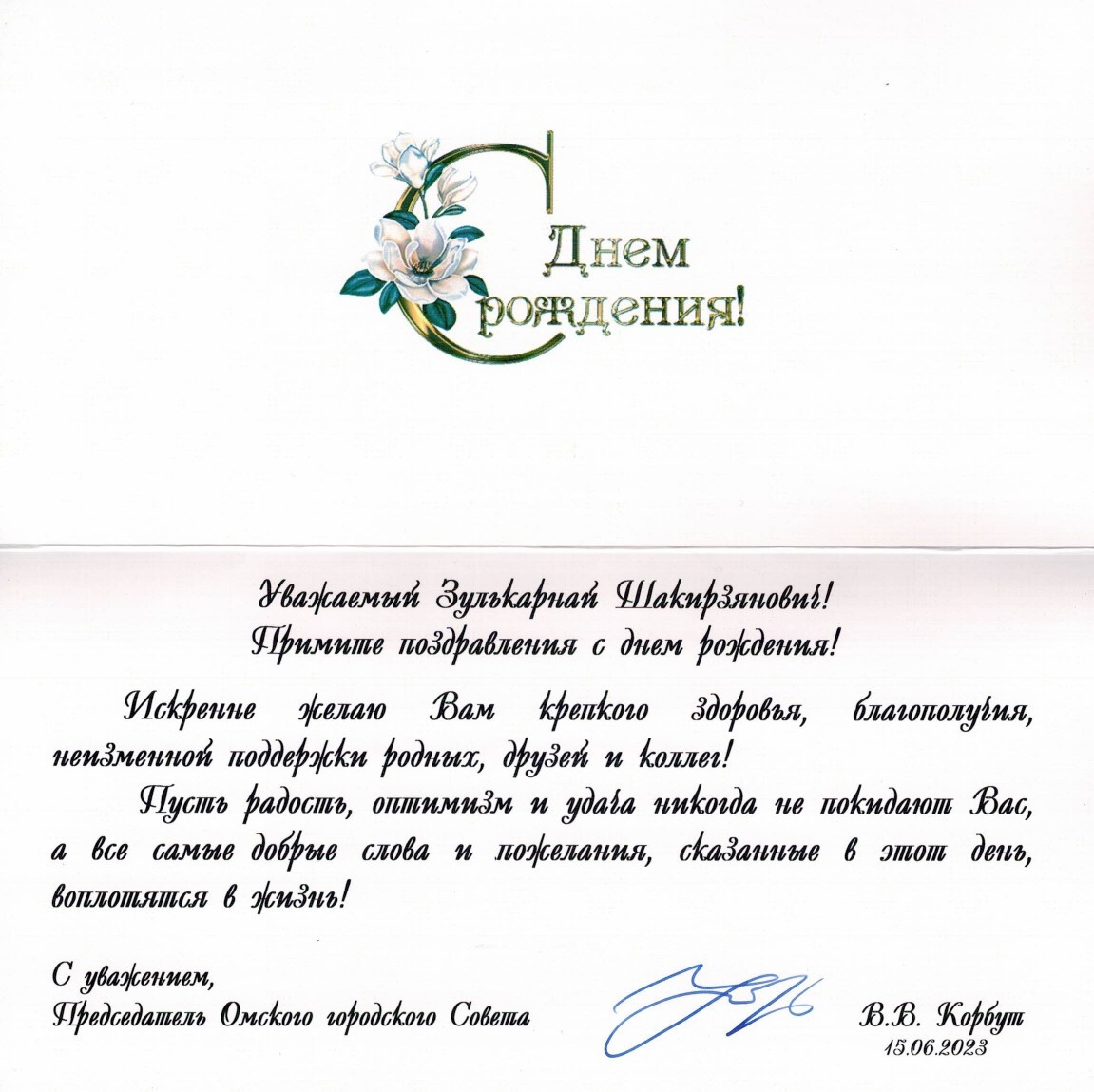 Поздравление Муфтия ДУМ Сибири от Председателя Омского Горсовета