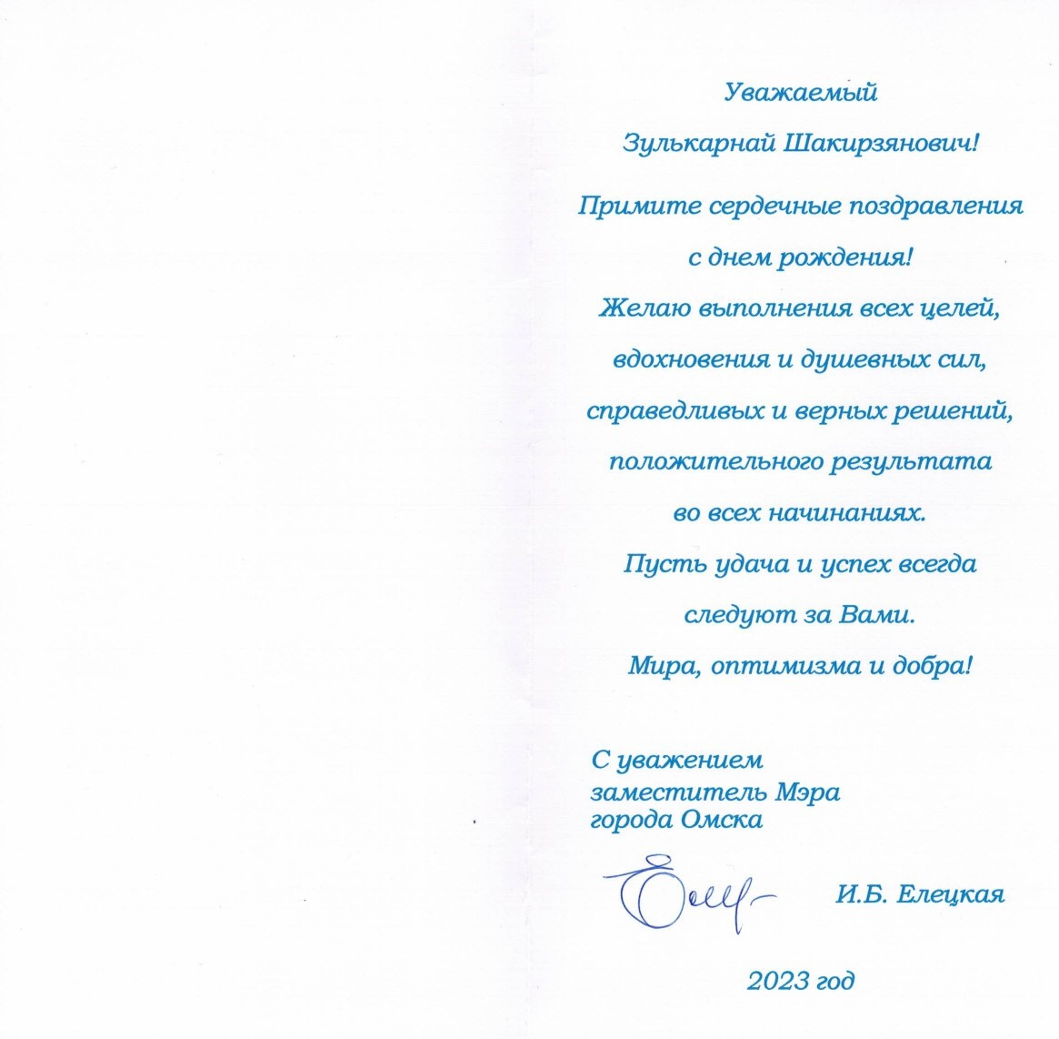 Поздравление Муфтия ДУМ Сибири от Председателя Омского Горсовета